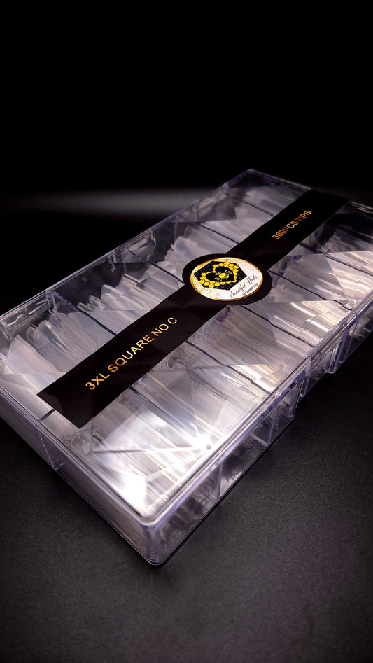 3XL No C-Curve Coffin Nail Tips - CLEAR