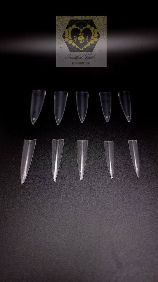 XXL No C-Curve Stiletto Nail Tips - CLEAR